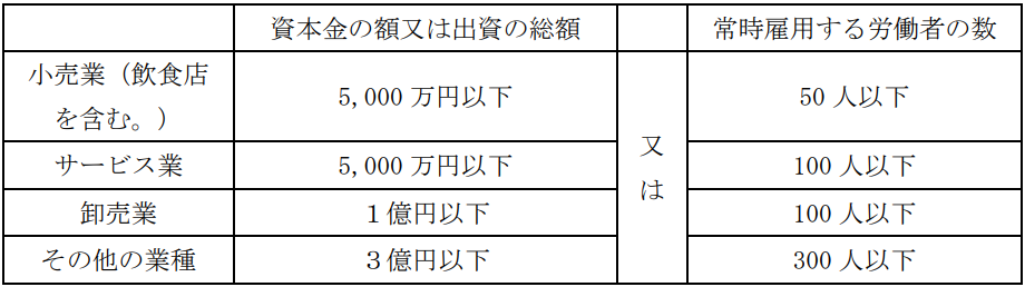 中小企業事業主(範囲は次の表の通り)