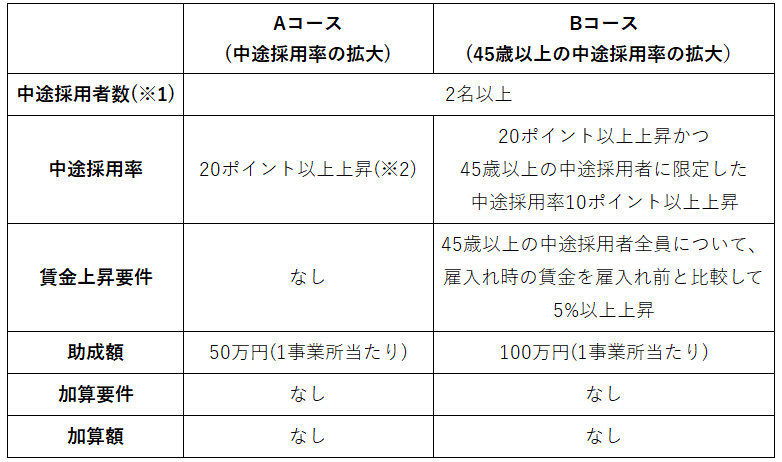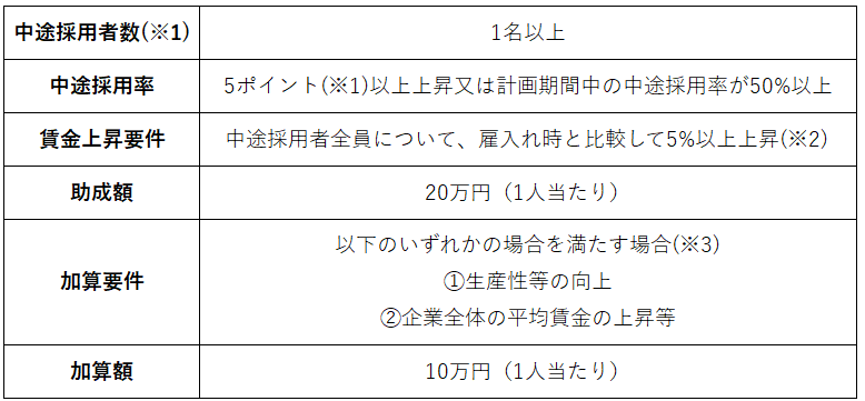 • 中途採用者の賃上げ(5%以上の上昇)を必須条件とする。