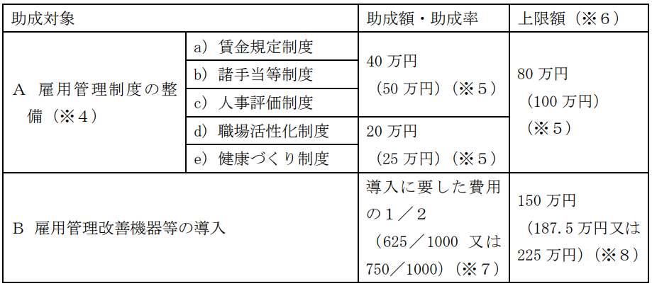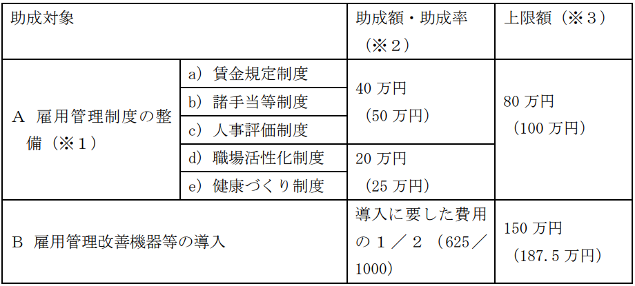 ※3 上限額は、複数の雇用管理制度の整備又は雇用管理改善機器等の導入を行った際の助成上限