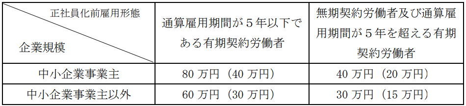 助成額を、対象となる有期契約労働者1人につき30万円(中小企業事業主は40万円)に変更する